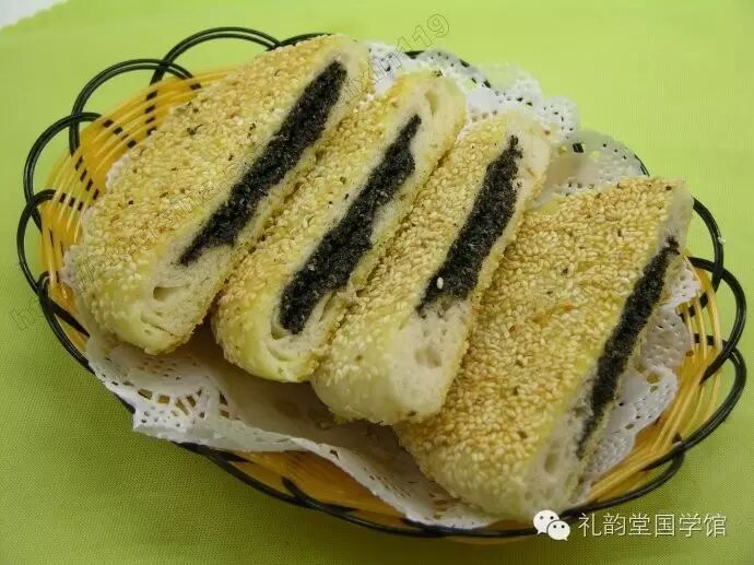酥饼的材料:红豆沙、黑芝麻各适量