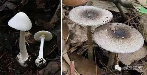 裂皮鹅膏Amanita rimosa(剧毒!!)和灰花纹鹅膏Amanita fuliginea(剧毒!!)