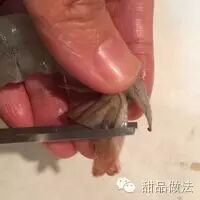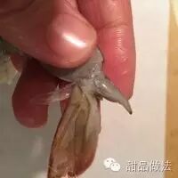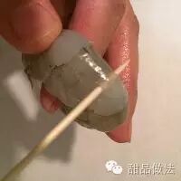 用牙签从虾身的倒数第一节与倒数第二节中间穿过,然后向上抽取虾线