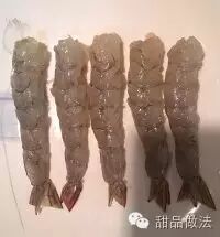 在虾的腹部上中下三个部位各轻轻地斜切三刀
