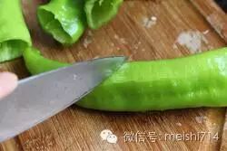 1.将尖椒洗净,切掉蒂部,可以用小勺挖掉籽。