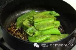 7.把煎好的青椒倒入锅中,翻匀入味。待汤汁浓稠时可出锅。喜欢酱汁更浓稠可勾些许水淀粉。