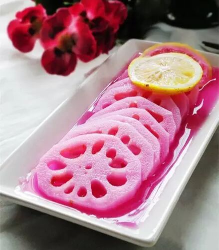 材料:藕200克、紫甘蓝150克、糖、白醋、蜂蜜