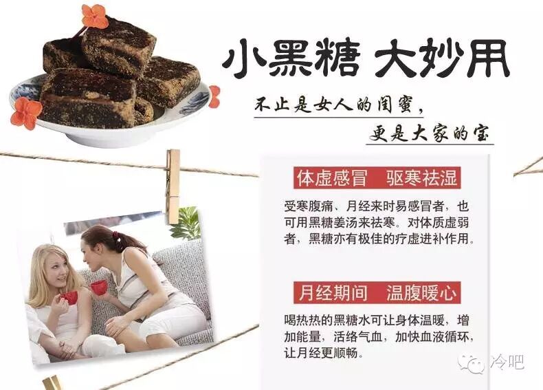 黑糖又称为「红糖」或「红砂糖」,与常见的白糖一样,两者差别在于黑糖较粗制,保留较多的矿物质及维生素,特别是铁、钙、钾等重要矿物质,因此营养成分比白糖高。 黑糖最明显的功效是调养女性生理期的不适。由于黑糖热量高,能促进血液循环,减缓子宫平滑肌的收缩,加上本身含有铁质,能补充生理期流失的铁及热量,因此许多女性会在生理期间饮用黑糖水来舒缓经痛。这和有些人生理期会吃巧克力的道理一样,只要是高热量的食物都能减轻经期的不适。 而饮用黑糖水的方式,最好是在经期前二至叁天将黑糖泡热水饮用,能减轻经期时的不适;直接吃糖块的效果不仅较差,摄取的热量也会太高。 此外,黑糖还能促进血液循环、具有活血作用,血液循环好,体质也会改善。 另外,从中医的角度而言,黑糖具有整肠经胃的功效,适合肠胃不舒服、消化不好的人。 这边要给大家提醒一下,对于因胀气而引起的肠胃不适,不宜食用黑糖改善;还有,咳嗽时千万不可饮用黑糖水,因为黑糖会使痰增多,更添不适。 必须注意的是,糖尿病患者和肾脏病患者必须避免食用黑糖。