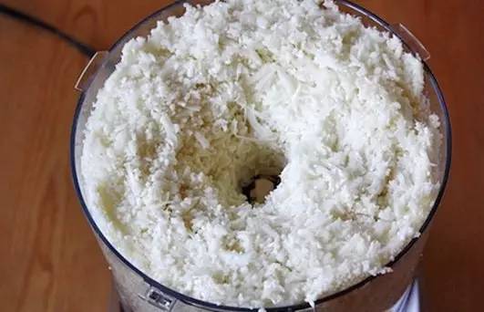 2、将切碎的花菜放入搅拌机内,打成粉状。