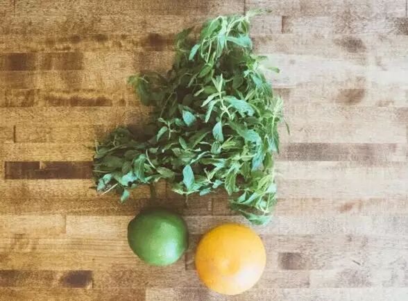1、准备一些薄荷叶,清洗干净,用搅拌机打成碎片。