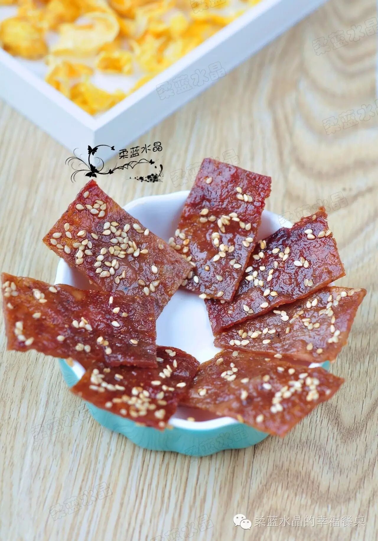 如果觉得上面的零食太清淡,那就来点重口味的吧!嗜肉者一定不能错过的猪肉脯,比买的更健康、更新鲜,而且还不含防腐剂。