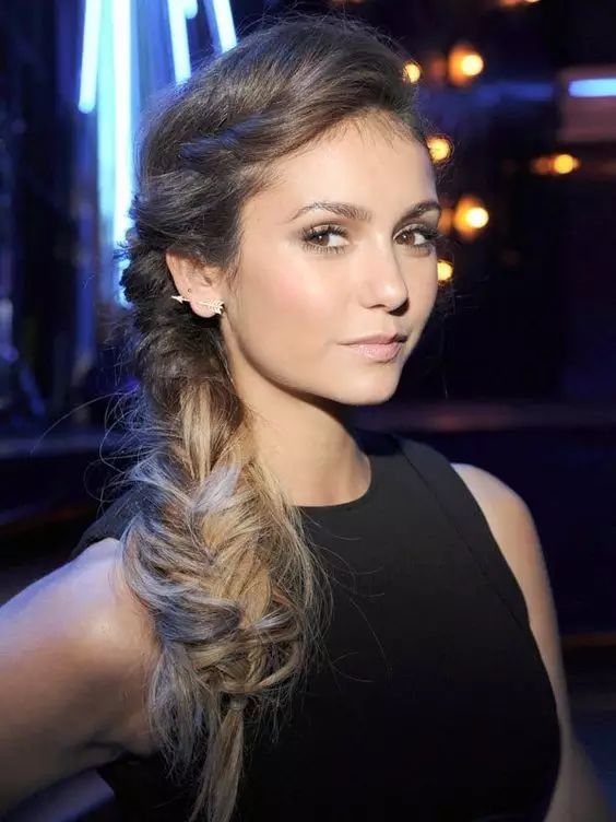 这个发型实际上是四股辫,因蓬松的发辫凹凸不平形似菠萝皮而得名,发束侧在一边,增添了不少女人味。《吸血鬼日记》女主Nina Constantinova Dobreva这样扎,更加性感迷人▼