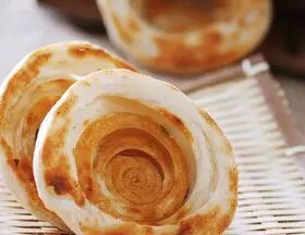 油旋儿,在济南已有百多年的历史济南油旋。儿外皮酥脆,内瓤柔嫩,葱香透鼻,其形似螺旋,表面油润呈金黄色。老济南人吃油旋儿是颇讲究的,大多是趁热吃,或配米粉,或配馄饨,另有一番滋味。