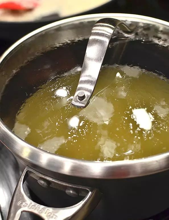 1.将花生油或菜籽油放入炖锅中并用中高火加热,至花生油完全融化或菜籽油烧开。