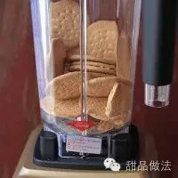 3. 最简单就是装在袋子中用擀面棒撵碎,但是效率不高而且不均匀;放入破壁机打碎显然方便得多;打好的饼干碎取出备用。