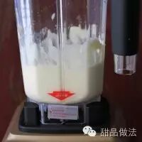 6. 淡奶油用电动打蛋器打至六分发,倒入破壁机中。