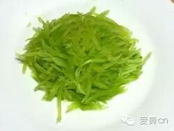 3、切成丝,铺入盘中。
