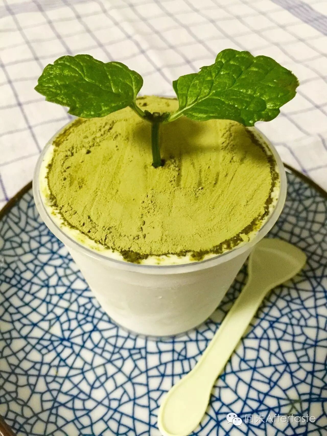 6、装杯,撒上抹茶粉,略作装饰。