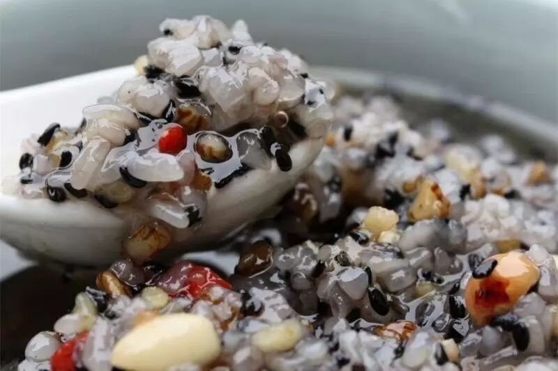 和普通醪糟(酒酿)不同,油醪糟是将花生核桃碎、黑芝麻粉、枣泥等用猪油煎炒,再加酒酿煮沸而成。但配料粉末化的耗力,让有坚果香、猪油鲜、酒酿醉的油醪糟,正日渐稀少。