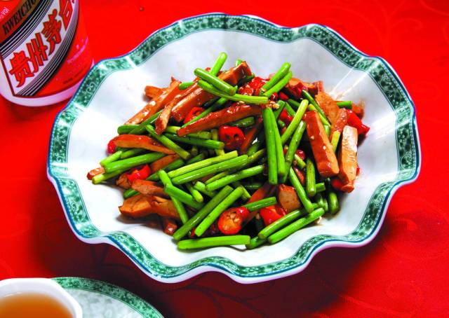 8.最后倒入蒜苗,迅速翻炒几下即可。