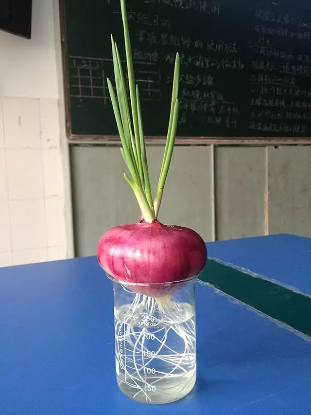 ▪ 水培:把洋葱头顶须根剪掉,放在容器里加入少量清水,只接触到洋葱的最下层即可。水中加入两片阿司匹林会帮助它快速抽芽。