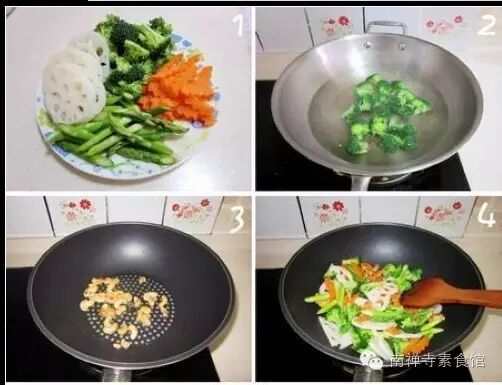 1、莲藕去皮切薄片。芦笋去老根洗净,斜切成段儿。西兰花切成小朵,胡萝卜去皮切片;