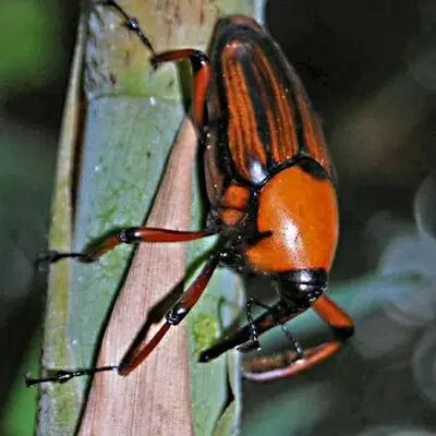 笋peng,竹类主要害虫之一。昆虫纲,鞘翅目,象甲科。成虫赤褐色,头管黑色,每翅具有纵纹九条。幼虫乳白色,纺锤形。年生一代。幼虫蛀食竹笋,危害严重。