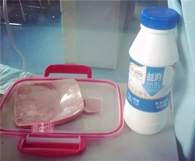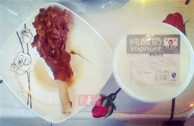 老妈爱心羊腿一根 + 酸奶(本来应该是火腿加酸奶,酸奶喝了一半,应该是200g。另外吃饭前称重瘦了六斤)