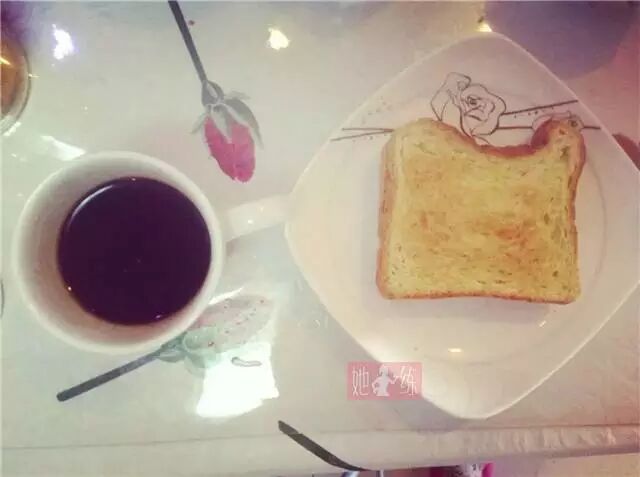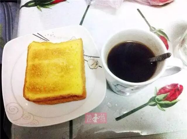 早餐:一杯黑咖啡,一块方糖,1片烤面包