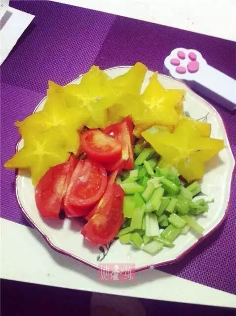 晚餐:水煮芹菜,一个西红柿,一个新鲜水果