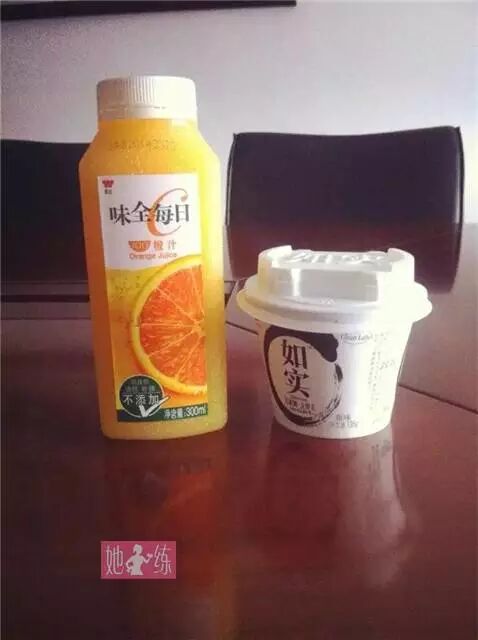 橙汁200ml + 酸奶200g(橙汁多一点酸奶就少一点)