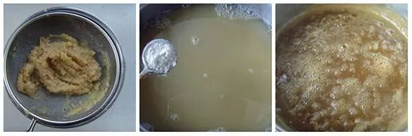 4、用滤网过滤挤压,滤掉果渣,取其汁水。