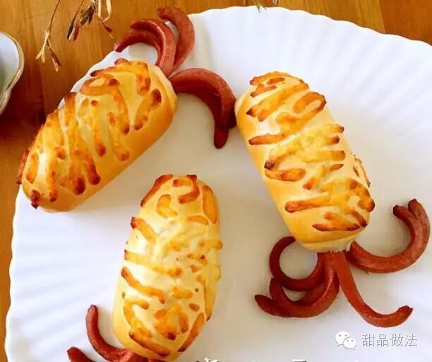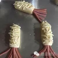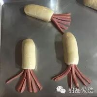 甜品做法·营养章鱼面包~逗孩子开心的儿童早餐包-香肠尽量选用一些高品质的品牌,使用前不需要处理,用厨房纸巾擦干水分即可,也不需要油炸,烘焙过程中就会卷起。带皮的香肠才会卷,塑料红衣的火腿肠效果不好!