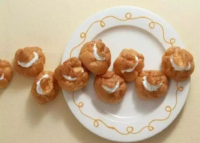 泡芙是一种源自意大利的甜食。相传上个世纪在法国北部的一个大农场里,农场主的女儿看上了一名替主人放牧的小伙子,但是很快,他们甜蜜的爱情被父亲发现,并责令把那名小伙子赶出农场永远不得和女孩见面。女孩苦苦哀求父亲,最后农场主出了个题目,要他们把“牛奶装到蛋里面”。如果他们在三天内做到,就允许他们在一起,否则,小伙子将被发配到很远很远的法国南部。