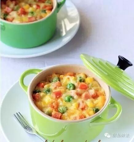 小吃做法奶酪什蔬焗土豆泥甜点|零基础即可做——除了营养丰富之外,香香的奶酪配上滑滑的土豆泥,再加上五彩缤纷的各种蔬菜和火腿,营养更丰富,口味也更好。
