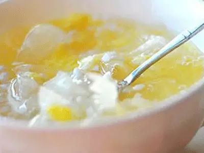 7、菠萝汁倒入粥里,搅拌均匀,再放入其它美味的水果粒,清凉的水果粥就做好了。炎热的夏季里,还可以放入冰箱冷藏后再喝更凉爽哦。
