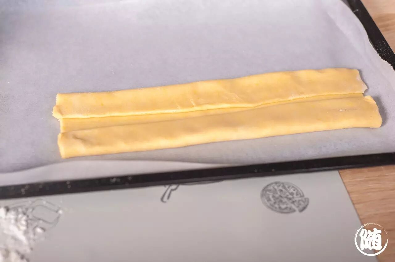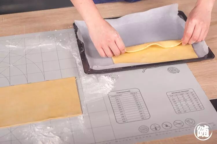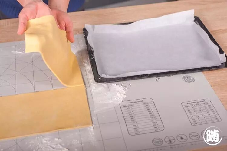 5 / 擀成2mm薄厚度 将四边不平整的地方去除,切成完整的长方形。