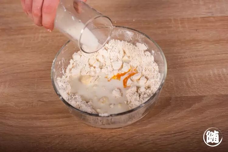 2 / 加入盐、蛋黄、牛奶混合均匀,揉成团状。
