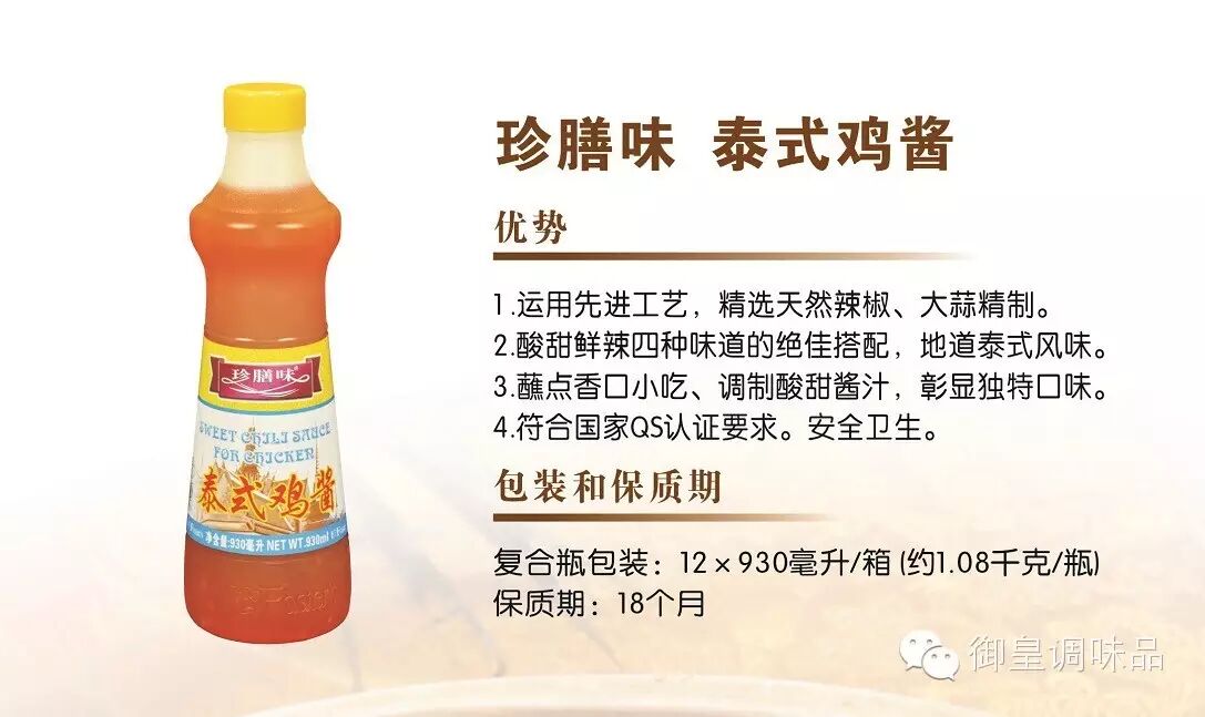 调料:番茄酱50克,珍膳味泰式鸡酱60克,白糖200克,白醋100克,姜末少许,麻油5克。