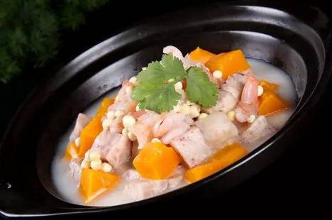 3、投入水瓜、蚬肉,与香芋一起煮,调入盐、鲜奶、味精,至水瓜熟即可。