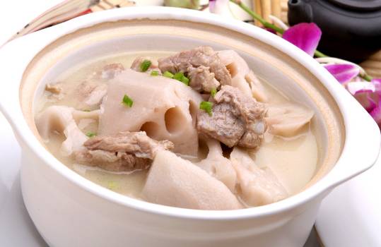 材料:莲藕2根、腔骨500克、姜6片、盐2茶匙。