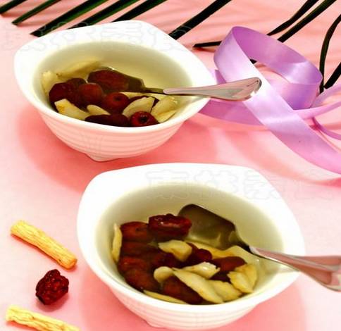 食材:红枣5枚,人参片10克,冰糖1小块。