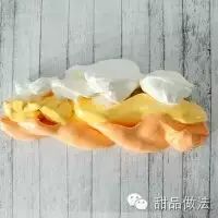 把这些分成三小份。加食用色素。可以换成你喜欢的颜色