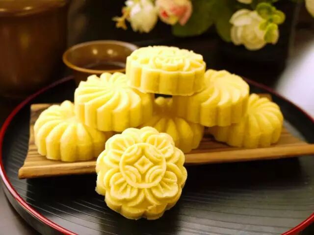 丰州特产,用绿豆去壳磨粉过细,与糖水拌和,以捏可成团,放能松开为度,装入木模压印成形,或圆或方,上笼蒸熟。清凉甜香,口感尤佳。