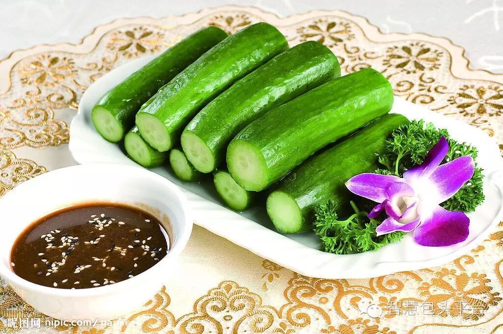 黄瓜有着强大的清热消暑能力,且寒凉性少,是伏天应对暑热天气的良好食材。黄瓜味甘、性凉、无毒,入脾、胃、大肠,具有除热、利水利尿、清热解毒的功效,主治烦渴、咽喉肿痛、火眼、火烫伤等,还有减肥功效。