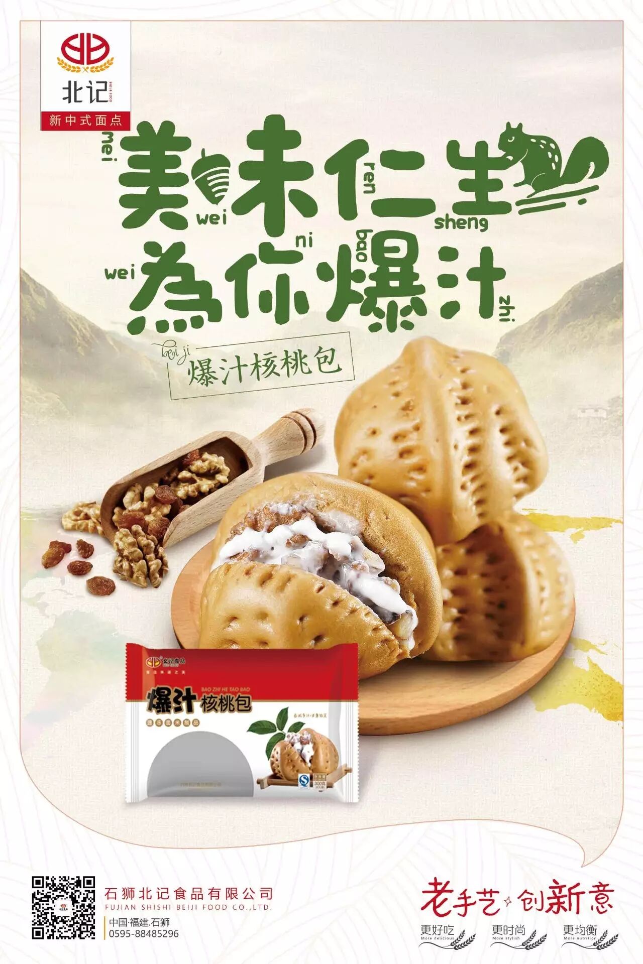 北记食品是一家专业从事食品研发、生产、销售的综合性现代化企业,凭借自有的核心技术及专业的研发队伍,以“创新”为核心竞争力,以高品质、高检测为经营理念,为面点时尚而努力,为面点走向世界而努力。