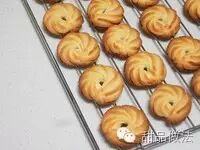 *具体时间和温度以自己的烤箱为准,原配方是170度烤的。烤的时候注意观察,颜色过深就要拿出来了。大家常说的四周已经颜色过深,但是中间还很浅的状态我也有遇到,这个好像和烤盘有关。烤好之后立即拿出,放在晾网上晾凉。一定要凉了之后再装袋子或是别的容器里,不然容易受潮。我这个是晾了一晚上,现在已经秋天了,比较干燥,所以曲奇过了几天吃也是一样酥的。