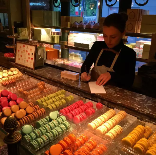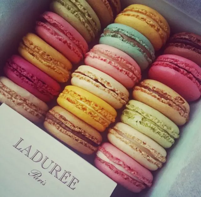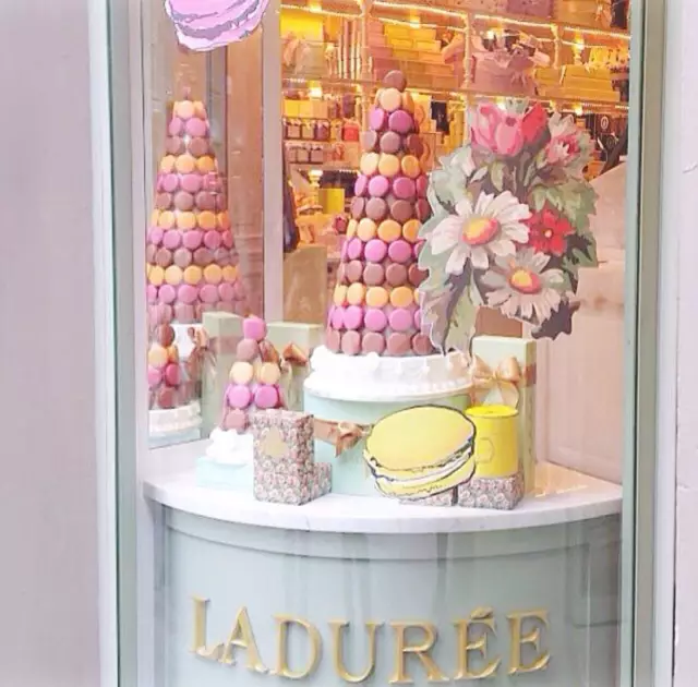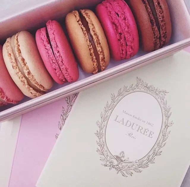 法国巴黎著名高级甜点Laduree创建于1862年,经过近1个半世纪的洗礼,Laduree的甜品界帝王地位依然不可动摇。Macaron就是该店的镇店之宝。Laduree堪称甜点中的Louis Vuitton,其甜品不仅好吃,更是注重外形和包装的精美,每年Laduree都会请著名的时装设计师来设计其甜点的包装。Laduree出品的Macaron(马卡龙),每一个颜色都代表着不同的口味,凡是想得到的颜色几乎都有!桃红色的是蔓越莓味,绿色的是青苹果口味,深咖色的是黑巧克力口味。每年的特定季节,Laduree还会推出特别限定的口味。总店在法国巴黎,现在中国上海、香港也有分店。小编当然是尝过觉得好吃,才如此着迷。比起其他牌子的Macaron,这牌子的更加酥,不会过于甜(当然macaron都是比较甜的,对于不太习惯甜食的人来说),十分对得起她的价格。