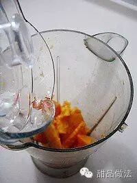 将芒果洗净,去皮,将果肉放入搅拌器内。