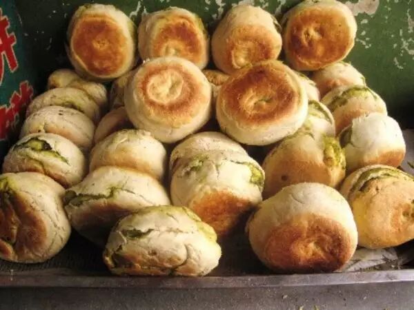 锅盔是临夏最常见的传统面点食品,它以发酵面粉为主料,按辅料葱油、糖等不同,可分为葱油型、糖酥型和白饼型。制作锅盔技术性强,烤制方法独特。