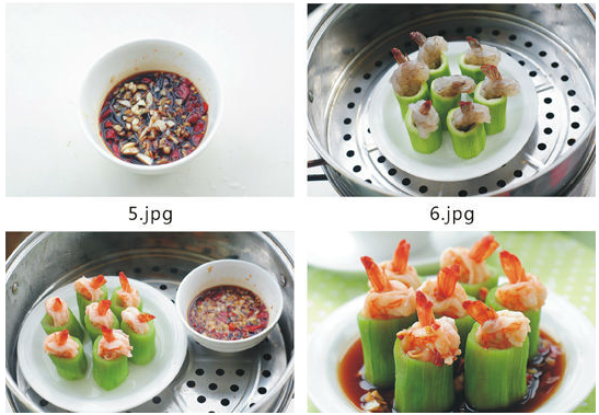 剁椒和蒸鱼豉油都含有盐,所以不需要再加盐了。蒸的时间3-5分钟,断生后再焖一分钟即可,否则蒸久了虾肉变老,丝瓜盅也会过于软烂而无法站立。