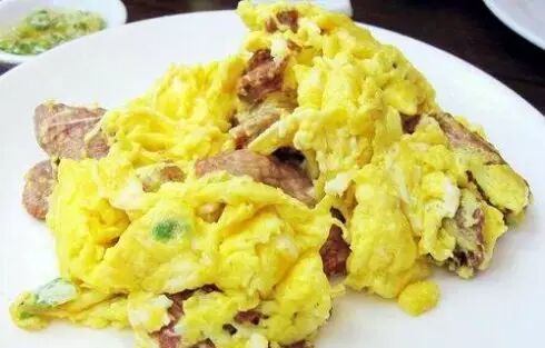 3.将镬烧至十分热,放入油,烧热后,放入蛋液,用中火拌炒至蛋凝固,撒入葱粒拌匀,即可上桌。