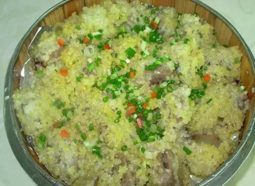 7.再倒入小米排骨,上笼蒸40分钟左右即可。