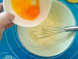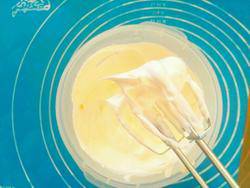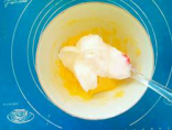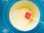 取一半的蛋白霜放入蛋黄糊中。翻拌均匀。